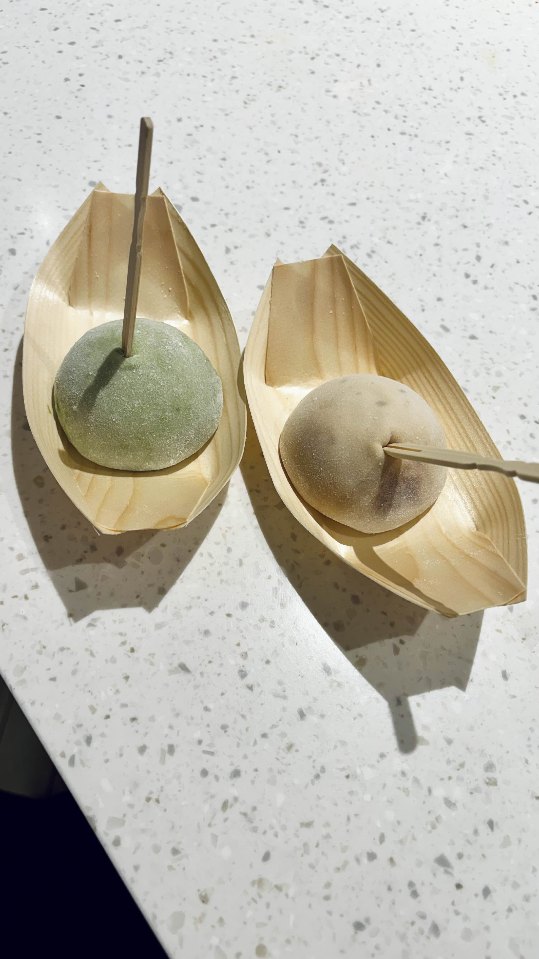 제가 먹은 건 솔티드 카라멜 팝콘 맛입니다. 맛을 고르면 그 자리에서 바로 반죽된 모찌에 싸주십니다.